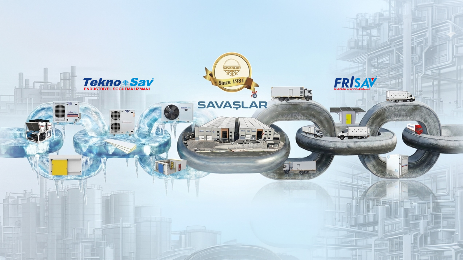 1981 yılında Endüstriyel Soğutma Sektörünün duayenlerinden Prof. Sabri Savaş'ın önderliğinde kurulan SAVAŞLAR, bugün sadece tesislerin değil, uluslararası lojistik ağlarının da standartlarını belirliyor. Biz yalnızca cihaz veya araç kasası üretimi yapmıyoruz; gıdanın, ilacın ve kimyasalın üretim bandından çıkıp son tüketiciye ulaştığı o zorlu yolculuğun tamamını güvence altına alıyoruz. TEKNOSAV ile fabrikanızın soğutma kalbini inşa ederken, FRİSAV ile o kaliteyi yollara, frigorifik filolara taşıyoruz. Savaşlar markası altında çıkan her ürün, 45 yıllık sahadan kazanılmış bir mühendislik standardını taşır.